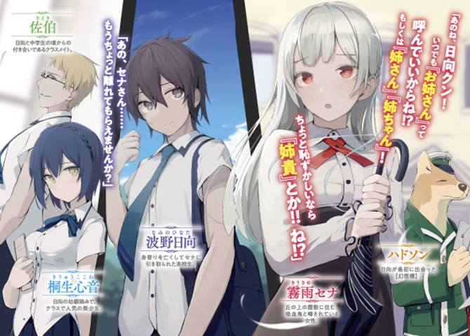丘の上の屋敷には、盲目の吸血鬼が住んでいる。そういう噂を聞いたのは、僕がとても小さな頃だ。唯一の肉親であった祖父を喪った僕は、件の女性、霧雨セナに引き取られた。彼女の正体は噂通りの吸血鬼。ただし、性格は心配性でおせっかいの姉といった感じで、おまけに物理的な距離が常に近い。そんな彼女のまわりには、一つ目の怪物、犬の郵便配達員など、多種多様な生き物が溢れていて、それらが視える僕には特別な力が宿っているらしい。未知の世界で新しい家族――吸血鬼・セナをはじめとする人外の存在と絆を深めるラブコメディ。