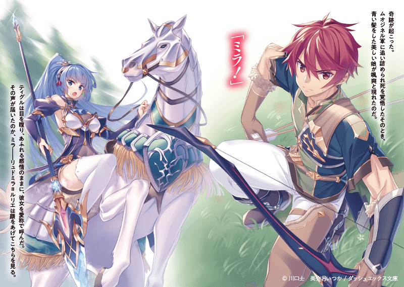 ジスタート王国のオルミュッツを治める戦姫で『凍漣の雪姫』の異名を持つ。18歳。愛称はミラ。相思相愛の仲だったティグルとついに結ばれた。